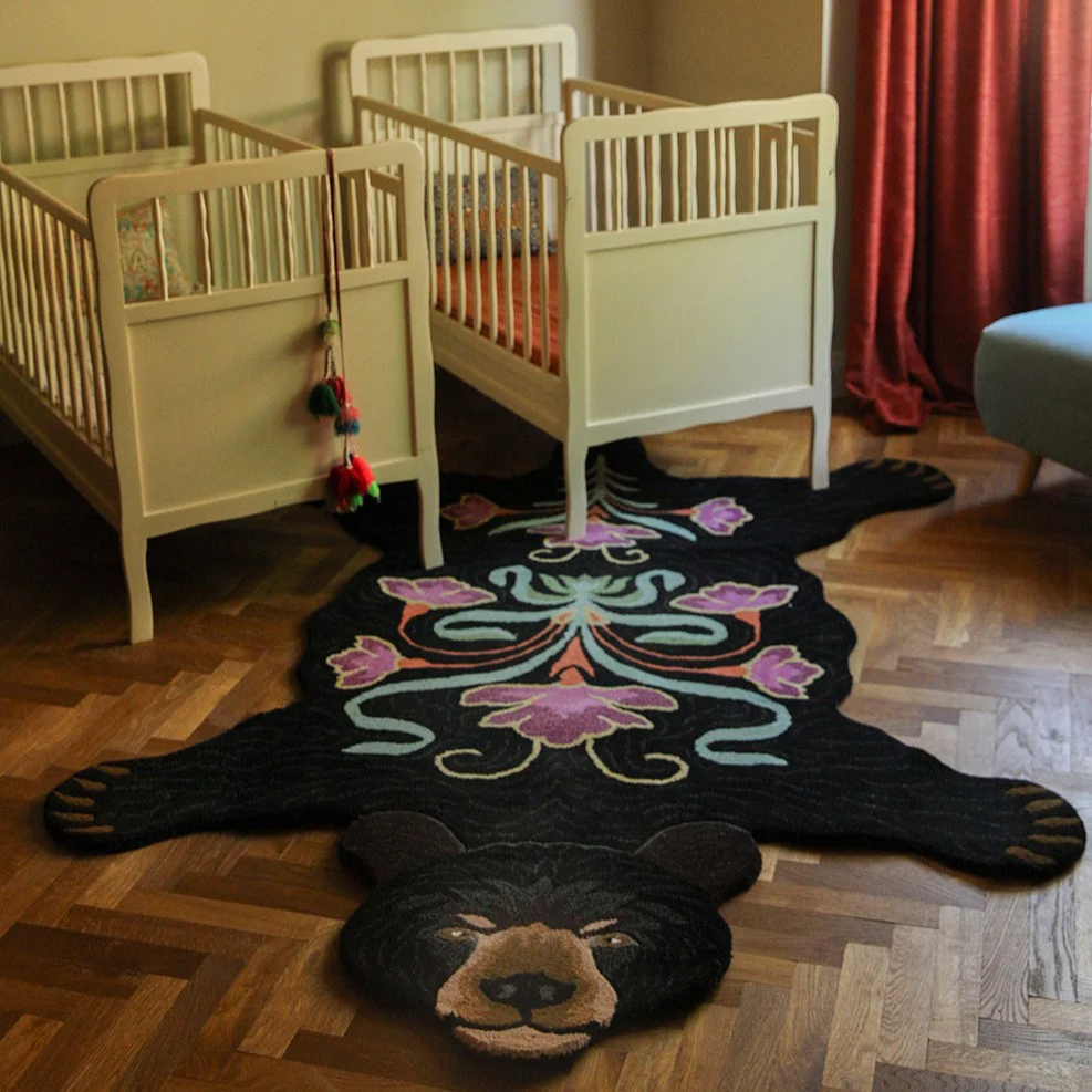 Bring some cheer to your room with this beautifully handmade Blooming Black Bear Rug XL.