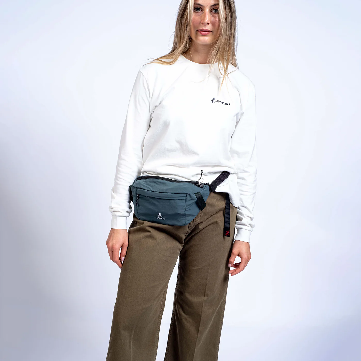 Mr Mike Graham developed the Gramicci line after cultivating a lifelong passion for professional climbing.Ā - Ideally worn as a base layer, this 'One Point' T-shirt is cut from soft cotton-jersey - Sweatshirt-like ribbed cuffs retain warmth - Use chest patch pocket to store your shades - Finished with brand's signature 'Running Man' logo