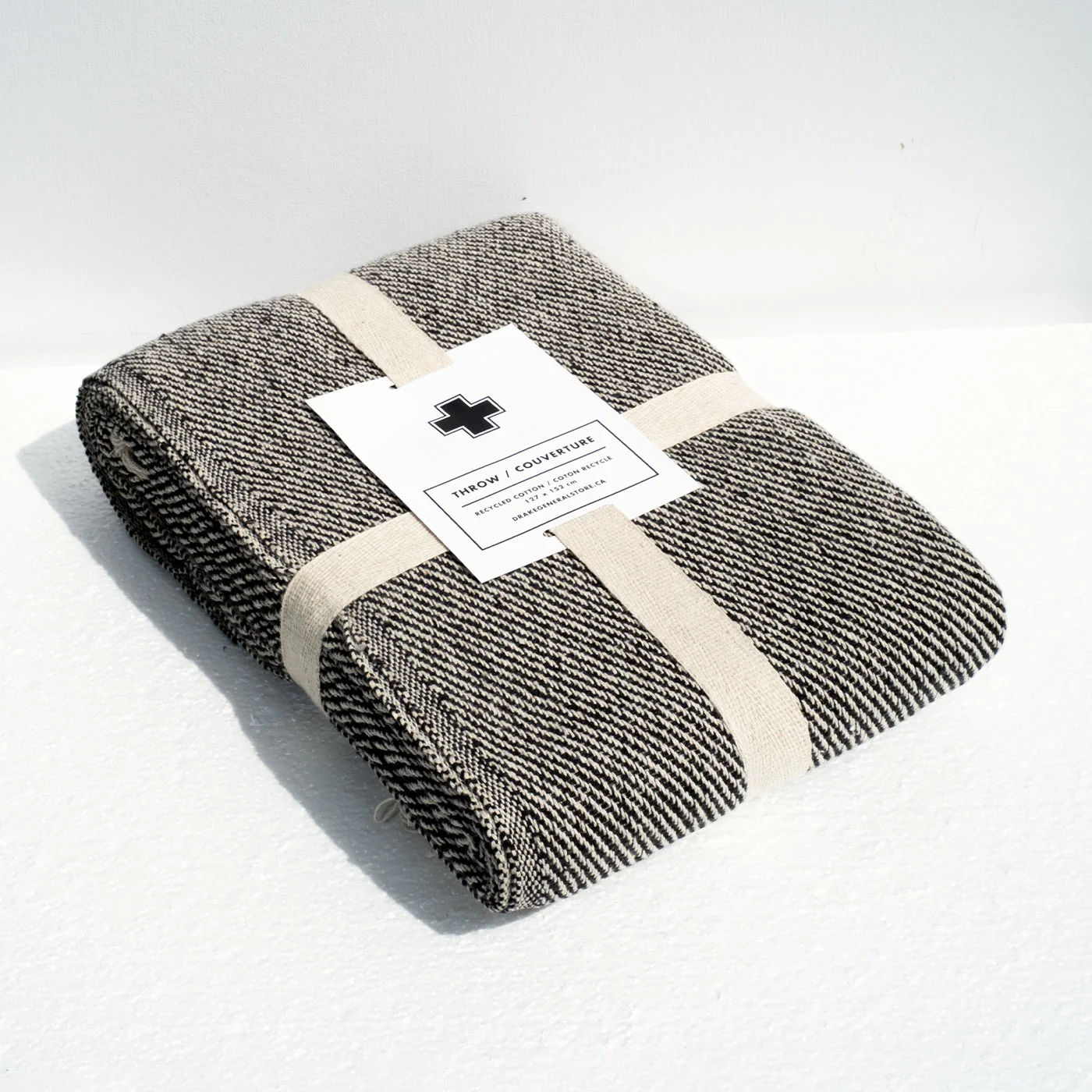 These hand loomed blankets are made with 100% recycled cotton.Ā They are perfect for fireside coziness and park dates.Ā Designed in house by Drake General Store